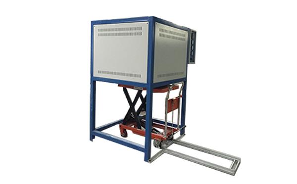 1400℃液压升降炉如图所示 ,集控制系统与炉膛为分体设计。炉衬使用真空成型高纯氧化铝聚轻材料制作而成。