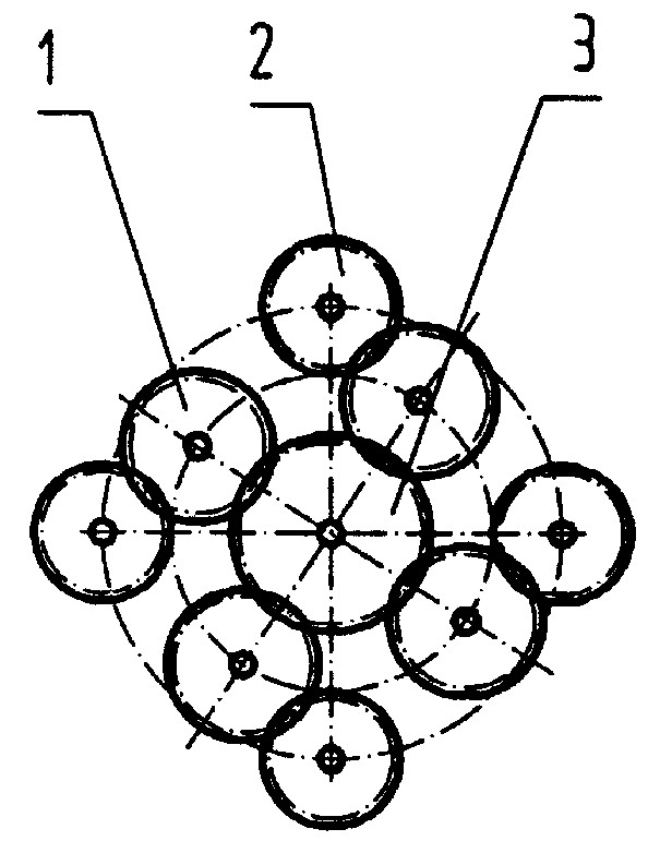 1、过渡齿轮;2、行星齿轮;3、固定齿轮