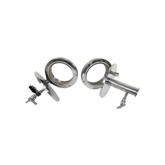 该带铰链的管式炉法兰采用全数控CNC精密加工,气密性好,耐腐蚀性强。密封垫为双层"O"型硅胶圈,可有效保证石英炉管(或刚玉炉管)与法兰之间的间隙密封。该带铰链的管式炉法兰部件可用于各种真空管式炉的炉管两端的密封,可通气氛,抽真空。