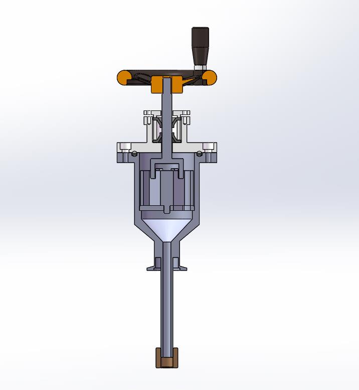 为了在真空熔炼过程中添加各种元素,因此在加料器里装有特制的4格加料器料斗,加料器有盖,能把加料器进行真空密封。在熔炼抽真空之前,把元素预先放在加料器料斗中,在添加元素时借手轮转动加料器料斗,元素便从加料器口流出,流入到熔融金属液面上,避免喷溅