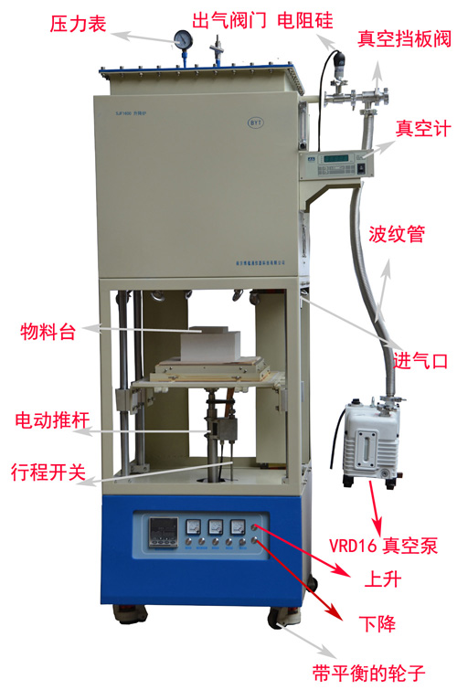 这款真空气氛升降炉以硅钼棒为加热元件,采用三层壳体结构和宇电30段程序控温系统,移相触发、可控硅控制,炉膛采用质1800型氧化铝多晶体纤维材料,炉壳间配有风冷系统,能快速升降温,该炉具有温场均衡、表面温度低、升降温度速率快、节能等点,拿取物料方便,不需要坩埚钳伸到炉膛里面,适合于高温取料退火、高温真空烧结等,是高校、科研院所、工矿企业做粉末烧结、陶瓷烧结、玻璃熔炼、高温实验、质量检测用的不错产品。