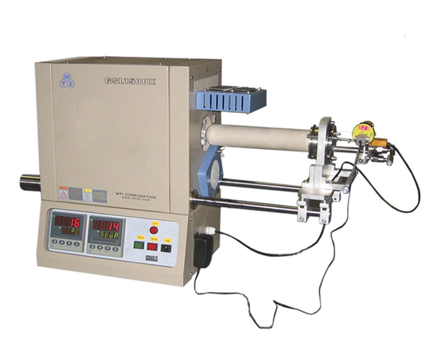 1、配置单端封口石英管,一滑轨安装在右侧法兰处用于炉管的手动移动 2、管子一端安装真空法兰,真空度用分子泵可以到10-5Torr,机械泵可到10-3Torr。 3、法兰处可插入一根直径1/4”热偶用来监测管内实际温度 |